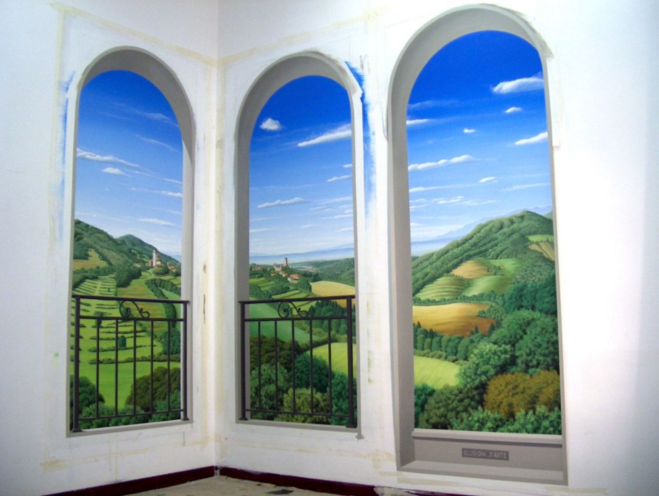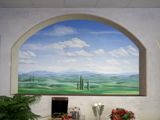 Taverna con parete centrale a pannelli pieghevoli, pareti laterali a tele. Veduta di un paesaggio toscano con dimensioni 16m² circa.  Taverna: cantina dipinta su cartongesso. Dimensioni: 250 x 250cm.  Archi dipinti su tela con veduta di Serravalle.  Paesaggio toscano dipinto su tela e corniciature dipinte su parete. Dimensioni: 100 x 80cm.  Agriturismo: paesaggi dipinti su tele con effetti pietra e soglie dipinti su muro. Dimensioni totali: 9m.  Agriturismo: tela con veduta panoramica dell'esterno. Dimensioni: 3m x 170cm.  Agriturismo: tela con veduta del bosco. Dimensioni: 170 x 170cm.  Paesaggio toscano su tela. Dimensioni: 220 x 120cm.  Veduta delle colline di Santomato su due tele. Dimesioni totali: 4 x 1,5m.  Piazza Duomo di Pistoia su pannello. Dimensioni: 180 x 140cm.  Colline senesi con arco a mezzane dipinto su tela. Dimensioni: 160 x 80cm.  Padule di Massaciuccoli con gazebo dipinto su parete.  Castello tedesco dipinto su tela. Dimensioni 50 x 50cm.  Panoramica delle colline di Prato dipinto su pannello. Dimensioni: 220 x 120cm.  Bifore gotiche con colline su pannello. Dimensioni: 120 x 60 cm.  Carta strappata con veduta sul deserto dipinto su pannello. Dimensioni: 130 x 130cm.  Veduta della Rocca di Montemurlo, Prato. Dimensioni: 90 x 60 cm.  Veduta con giardino all'italiana con Alpi Apuane sullo sfondo. Dimensioni: 2m x 1m.  Tramonto su Firenze dipinto su tela. Dimensioni: 250 x 80cm.  Pannello finta porta con fusione rappresentativa di vari particolari della Toscana e di Pistoia.  Pannello con riproduzione di un'opera di Magritte in una finta finestra. Dimensioni: cm 90 x 180.  Tela montata a testata letto con tramonto e finto muro spaccato. Dimensioni: cm 280 x 200.  Pannello con vaduta reale della costiera amalfitana ad arco. Dimensioni: cm 200 x 160.  Pannello con veduta di Gradara con finto arco a mattoni. Dimensioni: cm 120 x 80.  Pannello due archi con mattoni veri. Veduta su paesaggio toscano e casa. Dimensioni: cm 100 x 140 ciascuno.  Dipinto su parete paesaggio molto semplice di colline toscane e cipressi. Dimensioni: cm 250 x 170.  Tela con terrazzo, il giardino è ripreso da quello reale con particolare di agave. Dimensioni: cm 160 x 250.  Pannello con veduta di Firenze con particolare di gatto e gerani. Dimensioni: cm 230 x 150.  Pannello con veduta della villa di Montebuono (Pt). Dimensioni: cm 180 x 100.  Tela con veduta di Pistoia e giardino inventato. Dimensioni: cm 280 x 150.  Pannello con veduta di un particolare di Montale con due colonne riprese dall'ambiente reale. Dimensioni: 200 x 120cm.  Paesaggio dipinto su tela intelaiata Dimensioni: 120 x 80cm. .: Nota informativa sui prezziI preventivi, comprensivi della realizzazione del bozzetto studiato e personalizzato appositamente, sono gratuiti unicamente nel caso in cui il cliente commissioni la realizzazione del lavoro definitivo; altrimenti il bozzetto rimane di proprietà del cliente dietro il pagamento di un compenso pari a 20 euro l'ora + iva, senza nessun vincolo di realizzazione dell'opera. Si informa inoltre che per una consulenza (con sopralluogo) superiore alle due ore, sarà pattuito un compenso adeguato. Il prezzo dell'opera finita sarà calcolato in base alle ore di lavoro effettivo (al costo di 30 euro l'ora sul posto, 20 euro l'ora in studio), a cui andranno ad aggiungersi le spese di materiale, eventuali trasferte, montaggio o trasporto. Tutti i prezzi sopraelencati sono da considerarsi al netto dell'iva. Il costo finale dell'opera può variare da quanto pattuito nel preventivo fino ad un massimo del 30% in difetto o in eccesso. In seguito alla consultazione preliminare, una volta scelto il soggetto da interpretare pittoricamente, sarà quantificato un preventivo di spesa per la realizzazione dell'opera. Per i lavori più impegnativi sarà richiesto di firmare un contratto su cui saranno specificati il preventivo di spesa e le modalità di pagamento concordati. Per visualizzare il contratto scaricalo qui. |
